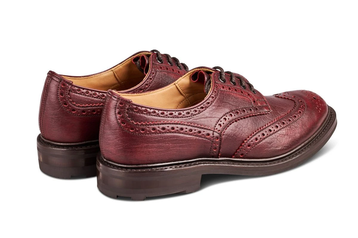 Bourton is our iconic menās country shoe. These handmade shoes are a piece of Tricker’s Northampton shoemaking history, and yet today they are the go-to shoe for men all around the world. TheĀ BourtonĀ is unmistakable – a heavy Derby shoe that bears the brogue detailing synonymous with true country shoes. A half bellows tongue is folded and attached to the shoe to provide a watertight seal, and the storm welt provides an additional watertight seal between the shoe’s upper and sole. The profile of a Bourton is characteristically strong.Ā
