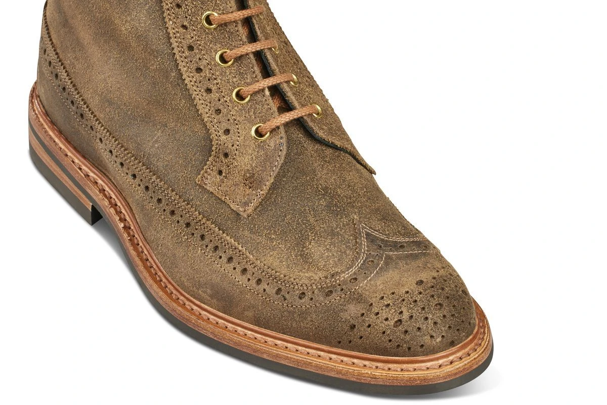 Simon is a Longwing brogue, also known as “American” brogues are characterised by wings that extend the full length of the shoe, meeting at a centre seam at the heel.